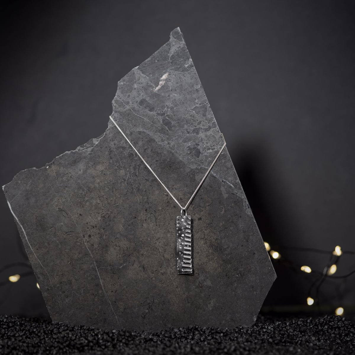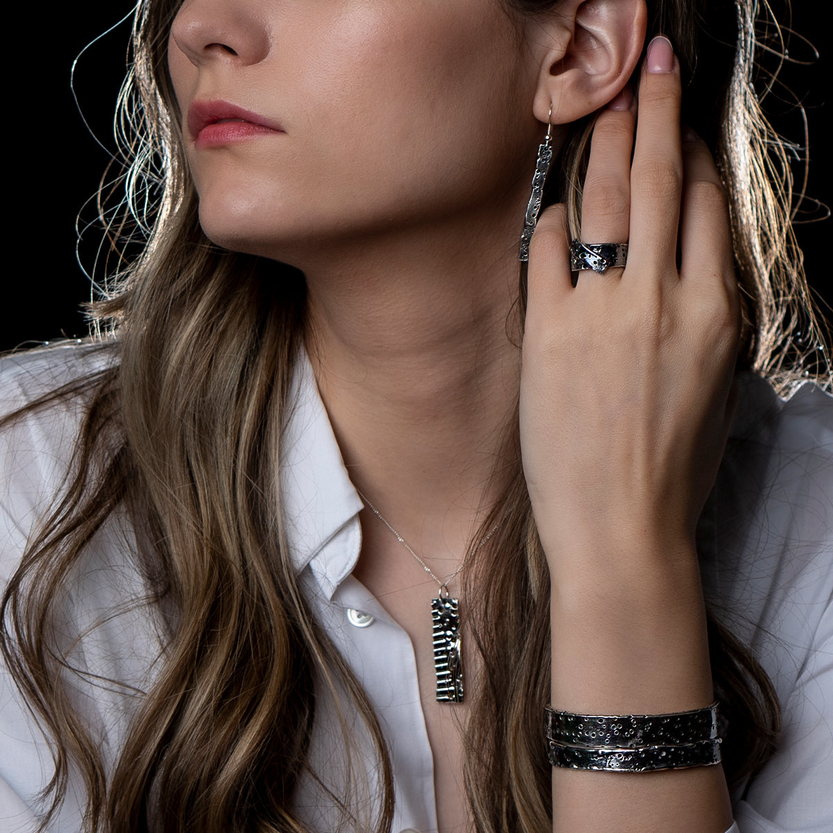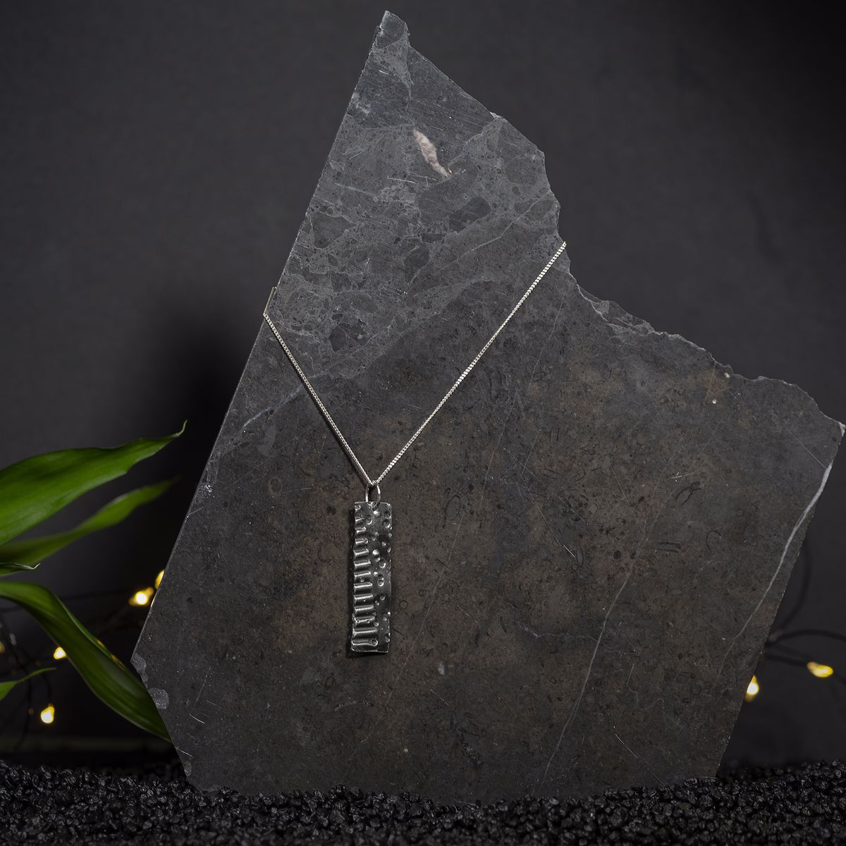 Acest colier din argint face parte din colecția Sensations și este lucrat manual. Forma unică a acestei bijuterii și patina argintului îți amintesc de frumusețea care se regăsește în imperfecțiune și autenticitate.O bijuterie minimalistă care te face să te bucuri de emoția simplității.